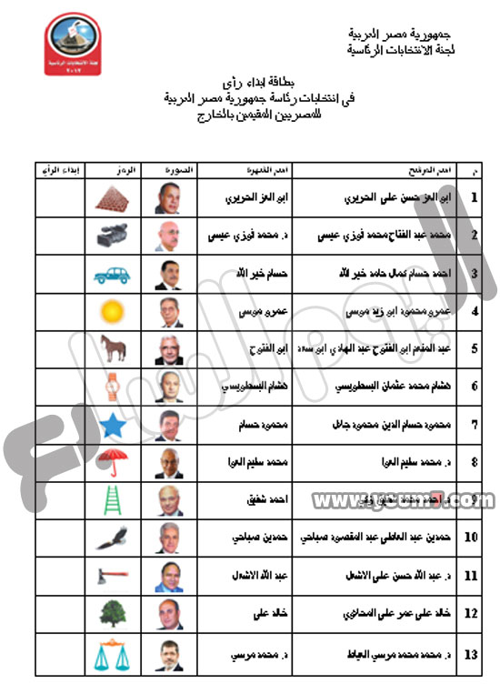 هذه قائمة باسماء المرشحين ورمز كل ناخب